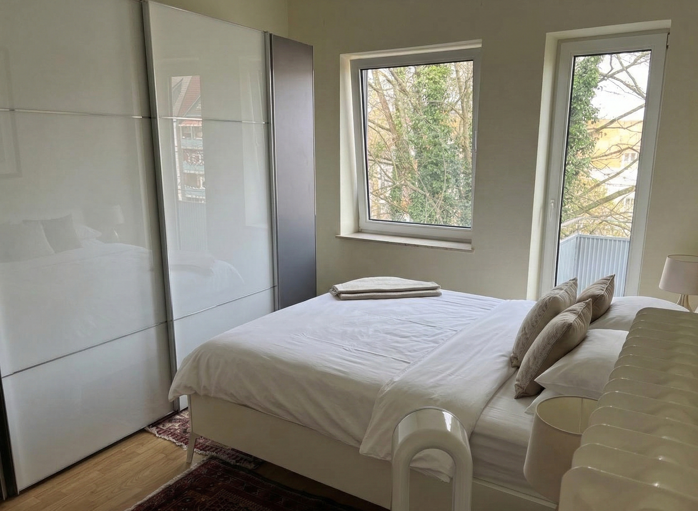 Das großzügige Wohnzimmer mit ca. 22 m² besticht durch seine Helligkeit dank zwei großer Fenster und bietet ausreichend Platz für individuelle Einrichtungsideen. Das ca. 16 m² große Schlafzimmer ermöglicht den direkten Zugang zum Balkon – ideal für entspannte Stunden im Freien.