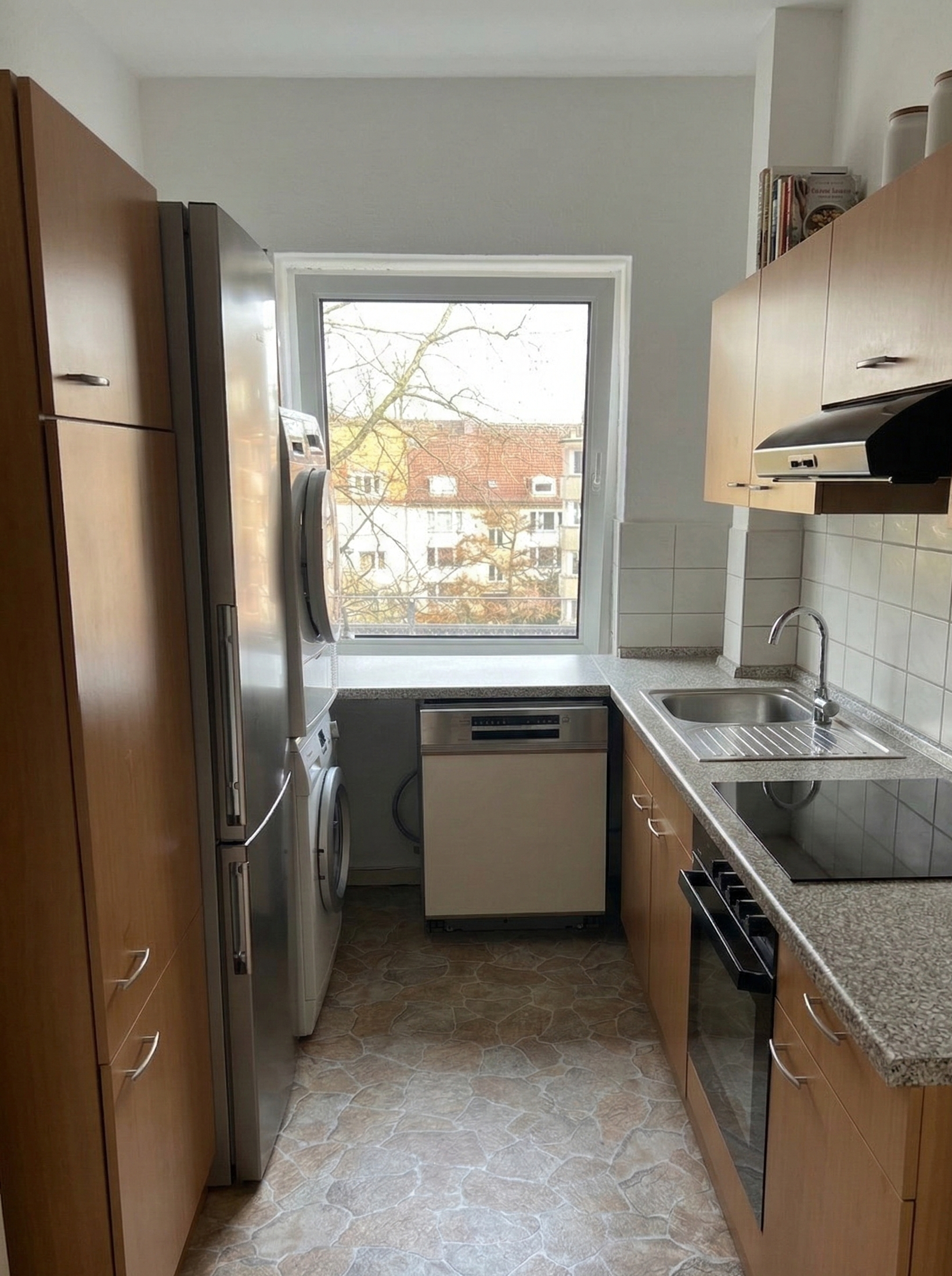 Die Küche ist mit einer funktionalen Einbauküche ausgestattet und bietet ausreichend Platz für eine kleine gemütliche Essecke.