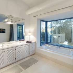 Die Gartenebene verfügt über ein Gästezimmer mit eigenem Bad, einen Wohnbereich, eine Unterhaltungszone, ein Heimkino, einen Weinkeller und eine Garage. Darüber hinaus beeindruckt die Villa mit einer imposanten Auffahrt, einem 24-Stunden-Sicherheitsdienst, überdachten und offenen Terrassen mit direktem Zugang zum Garten und zum Poolbereich, einem Essbereich im Freien und einer Küche mit Grillbereich. Der Swimmingpool befindet sich zentral im sorgfältig angelegten Garten.