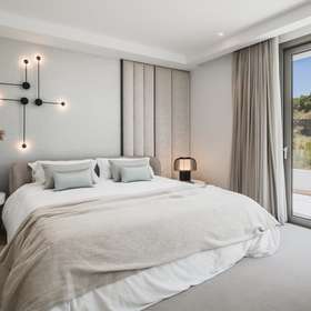 Das Obergeschoss erweitert den Luxus mit zusätzlichen Schlafzimmern, die jeweils über ein eigenes Bad und einen direkten Zugang zu einer Terrasse verfügen.