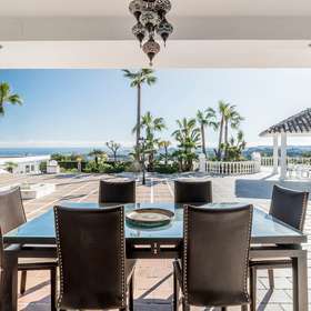 Die geräumige Küche verfügt über einen Essbereich mit fesselndem Blick auf die majestätischen Mijas-Berge.