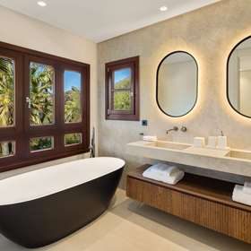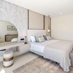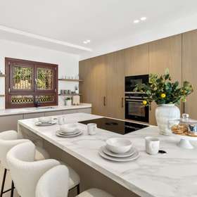 Auf drei Ebenen verteilt, beherbergt das obere Stockwerk elegant gestaltete Schlafzimmer, darunter ein beeindruckendes Hauptschlafzimmer mit eigener Terrasse und luxuriösem Ensuite-Badezimmer mit Marmorausstattung und LED-Beleuchtung.