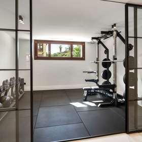 Der Keller dient als Unterhaltungsbereich mit Fernsehzimmer, Bar, Heim-Fitnessstudio, Abstellraum und Wäscherei. Darüber hinaus verfügt es über eine moderne private Garage für bis zu 3 Autos.
