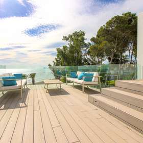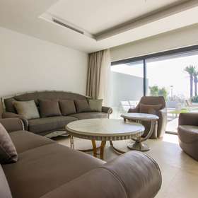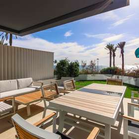 Direkt am Strand gelegen, nahe dem Stadtzentrum und dem Yachthafen, in einer luxuriösen Wohnanlage am Meer. Die südliche Ausrichtung sorgt für hervorragendes natürliches Licht. Das Anwesen befindet sich in einwandfreiem Zustand, da es sich um einen Neubau handelt.