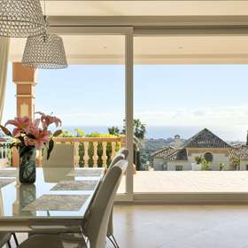Inmitten des renommierten Los Flamingos Golf Resort, Villa Padierna, bietet diese sorgfältig konstruierte Villa viel Platz und hochwertige Ausstattung. Erbaut im Jahr 2013, ist sie nach Süden ausgerichtet und bietet atemberaubende Ausblicke auf die Küste und das Mittelmeer.
