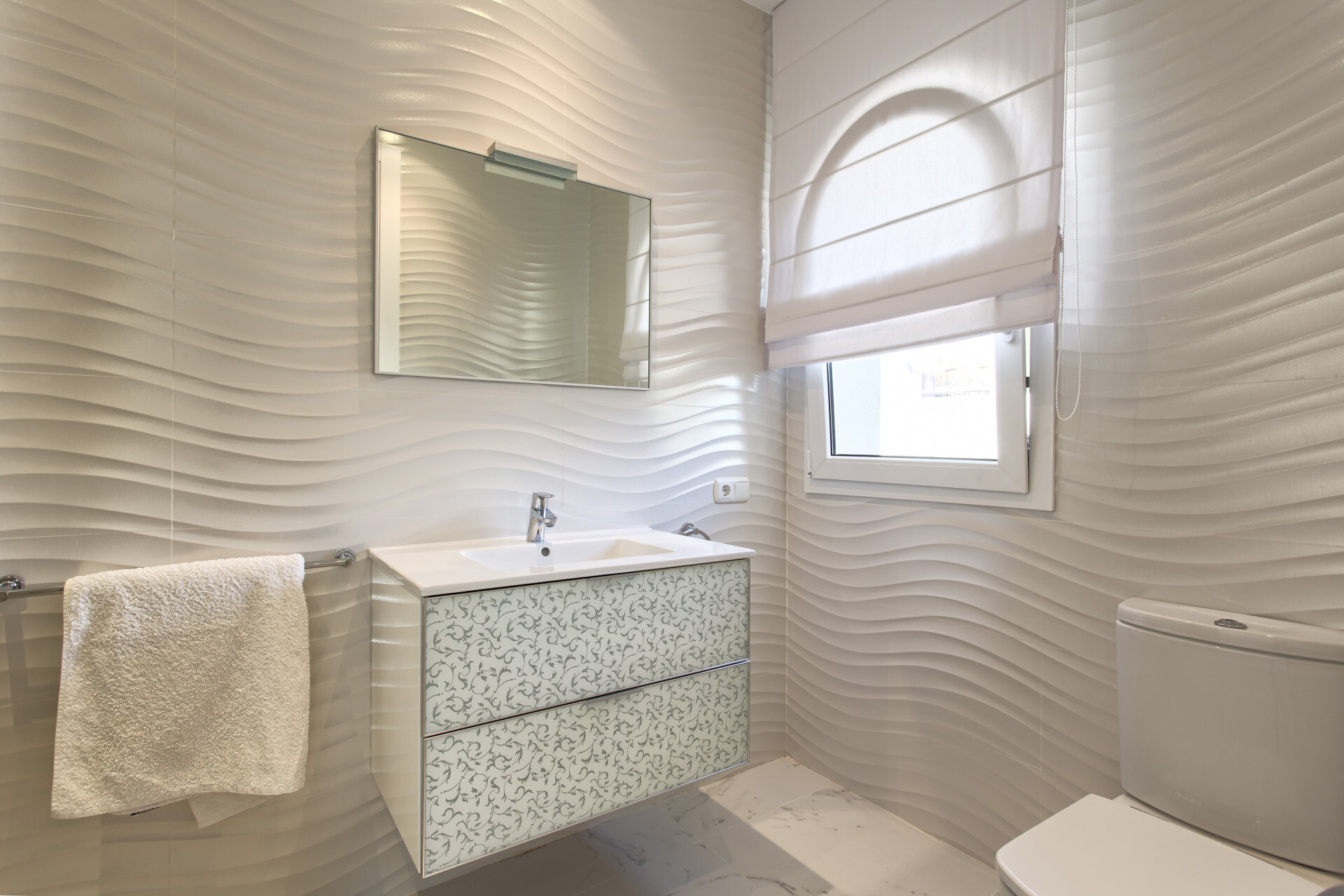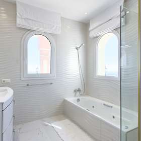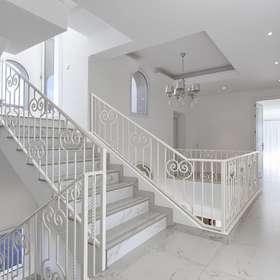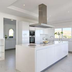 Die Hauptetage verfügt über einen großzügigen Wohn- und Essbereich, eine offene, voll ausgestattete Küche mit Siemens- und AEG-Geräten, eine Frühstücksecke, einen Waschraum, eine Gästetoilette und ein Gästezimmer en suite. Sie bietet auch direkten Zugang zu überdachten und offenen Terrassen sowie einen Aufzug, der alle Etagen bedient.
