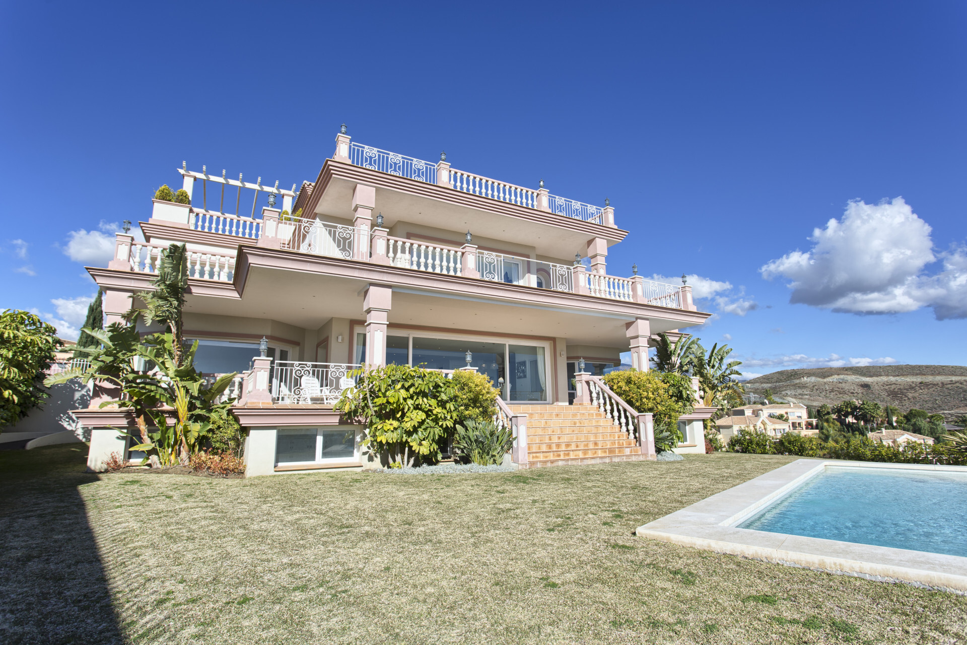 Umgeben von einem privaten Garten mit Pool liegt diese Villa günstig in der Nähe von Annehmlichkeiten, Golfplätzen und dem Strand.