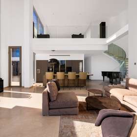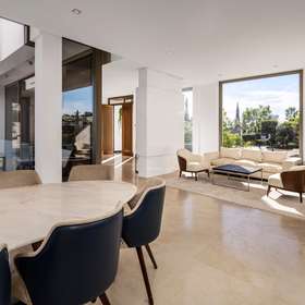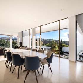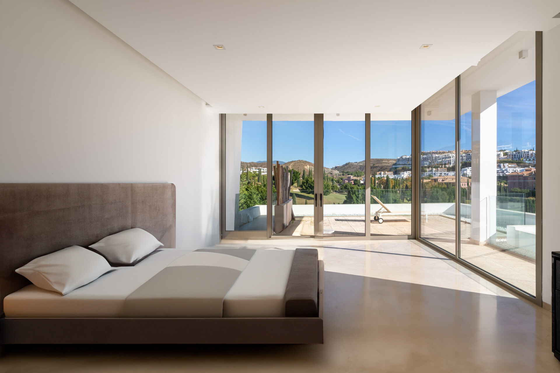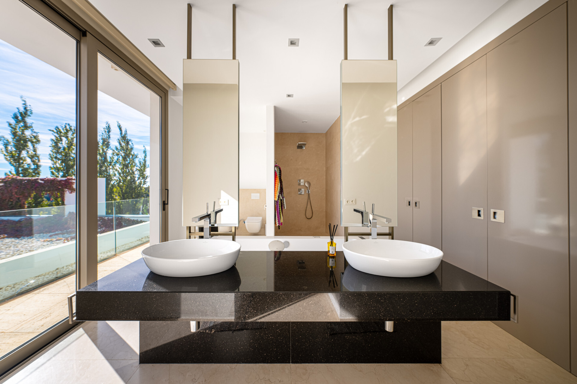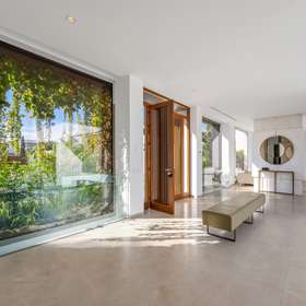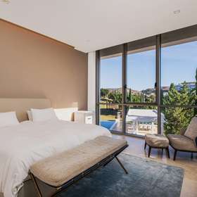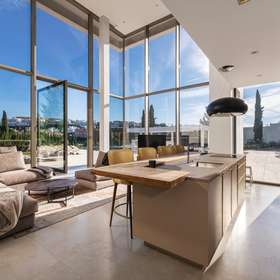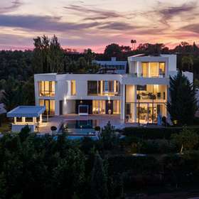 Die Villa, auf einem 2.577 m² großen Grundstück gelegen, zeichnet sich durch ihr nachhaltiges und modernes Design aus. Auf 3 Ebenen mit einem Aufzug verteilt, verfügt sie über großzügige Bereiche und große Fenster, die das Innere mit der umgebenden Landschaft verbinden. Das zeitgemäße Design, hochwertige Materialien und neutrale Farben schaffen einen hellen und eleganten Raum im Einklang mit der Natur.